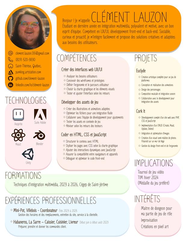 Bonjour ! Je m’appelle CLÉMENT LAUZON. Étudiant en dernière